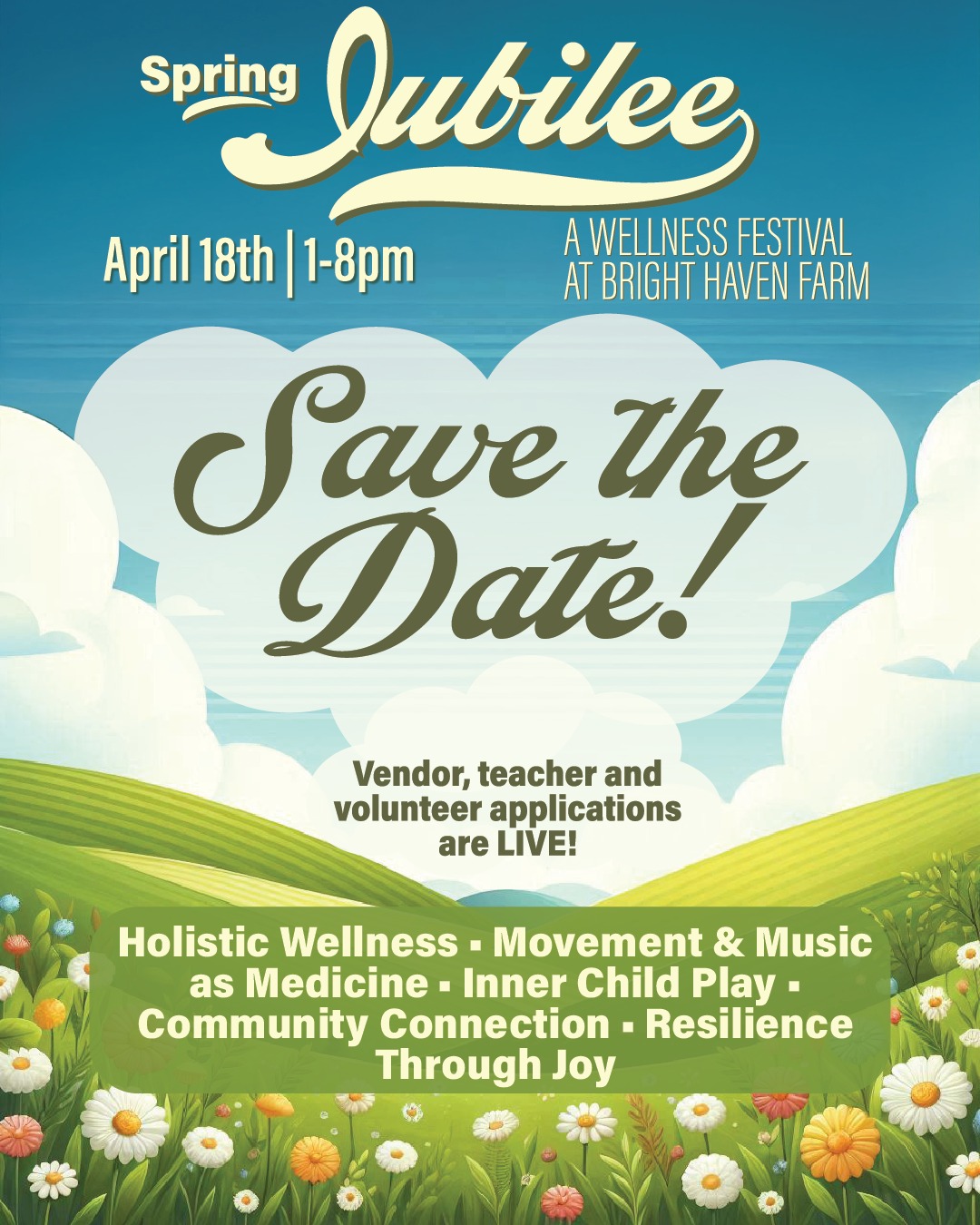 Join us on Saturday, April 18th from 1-8pm for a cozy festival welcoming in the spring and celebrating community, holistic health, metaphysics and more. There will be offering classes throughout the day to bring you movement, relaxation, rhythm and release, alongside an amazing array of vendors, healers and community experiences for all your shopping and rejuvenation needs.